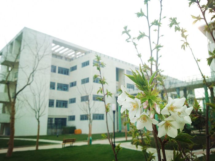 走入一區(qū)校園,銀杏枝頭的雀兒便歡歌相迎。恐人不知春消息,一曲迎春與君聽。兩旁高枝任它們追逐相嬉,一跳一躍間便譜出樂章無限。令人一見就恨不得身添雙翼,也化作一只鳥兒,飛上枝頭去看那初生的新芽,為它歌一首生的贊歌!由杏樹指路,鳥雀相引,讓人在滿目風(fēng)光中忘了腳下已走過了幾步路。繞過行知樓,映入眼中的,是一湖春水平如鑒,九曲小橋蜿如龍。你看那三三兩兩結(jié)伴同游的學(xué)生們,輕移蓮步,怕驚了碧水;慢吐鼻息,恐散卻游魚。柳絮紛紛,點(diǎn)在湖邊青苔;亭閣隱隱,映入水中綠樹。幾位留學(xué)生也趁著煦日暖陽,在這頗具中國(guó)古風(fēng)的小亭中談笑風(fēng)生。石橋分水色,照影團(tuán)圓中。水色隨春變,入畫意無窮。藝術(shù)樓的琴音與歌聲隨風(fēng)飄來,舞動(dòng)了垂柳,陶醉了櫻花,喚醒了羽衣甘藍(lán)。誰不愛這春動(dòng)校園,一片盎然?