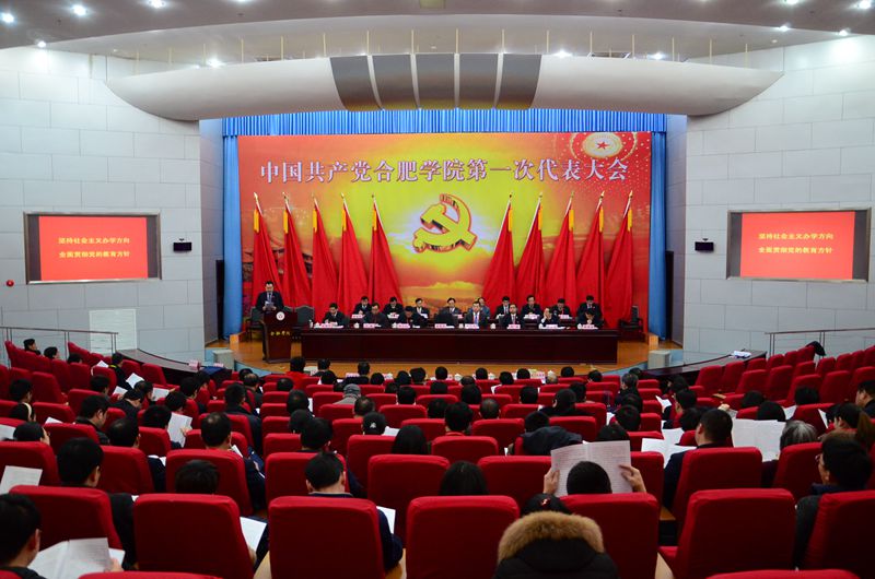 報告廳內氣氛莊嚴熱烈,大會主席臺上方懸掛著“中國共產黨合肥學院第一次代表大會”的會標,下方正中是金光閃閃的黨徽,鮮艷的紅旗分列兩側。本次大會的主題是:高舉中國特色社會主義偉大旗幟,以鄧小平理論和“三個代表”重要思想、科學發(fā)展觀為指導,全面貫徹黨的十八大和十八屆三中、四中全會精神,深入學習貫徹習近平總書記系列重要講話精神,堅持改革創(chuàng)新、開放辦學,主動適應地方經濟發(fā)展新常態(tài),主動適應高等教育改革與發(fā)展的新趨勢,全面深化教育教學改革,全面推進依法治校,全面加強黨的建設,以人才培養(yǎng)為根本,以提高質量為核心,以改革創(chuàng)新為動力,解放思想、凝心聚力、攻堅克難,以更加開闊的視野、更加奮發(fā)的精神、更加務實的作風、更加執(zhí)著的努力,加快推進地方應用型高水平大學建設進程。