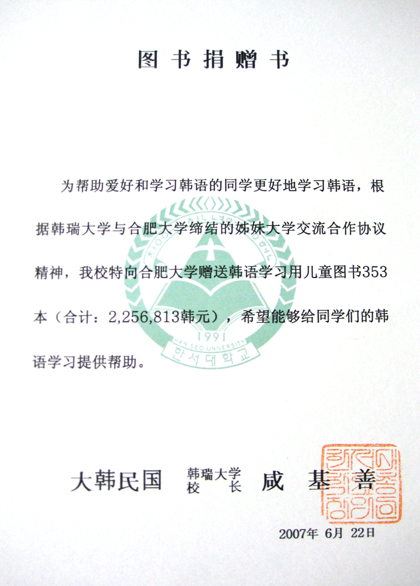 6月27日,韓國韓瑞大學向我院贈送韓語學習用兒童圖書353冊,價值人民幣2萬余元。這批韓語圖書為我院韓語專業的同學提供了一份珍貴的學習資料。