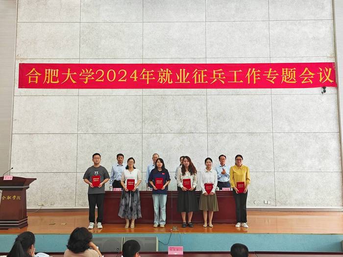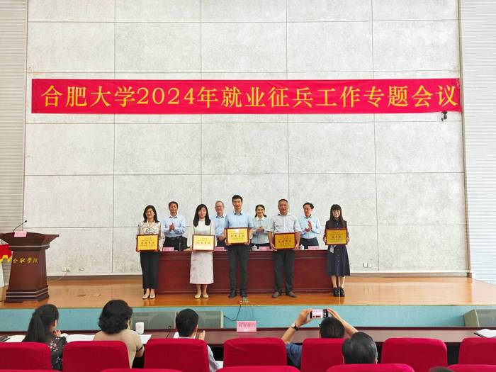 5月31日下午,我校在圖書館學(xué)術(shù)報(bào)告廳B廳召開2024年就業(yè)征兵工作專題會(huì)議。會(huì)議總結(jié)2023年就業(yè)征兵工作,表彰2023年就業(yè)先進(jìn)集體和先進(jìn)個(gè)人,同時(shí)部署2024年就業(yè)征兵工作。校黨委書記王其東,副校長陳秀,黨委委員、副校長白義香,黨委委員、紀(jì)委書記、省監(jiān)委駐合肥大學(xué)監(jiān)察專員吳功福出席。