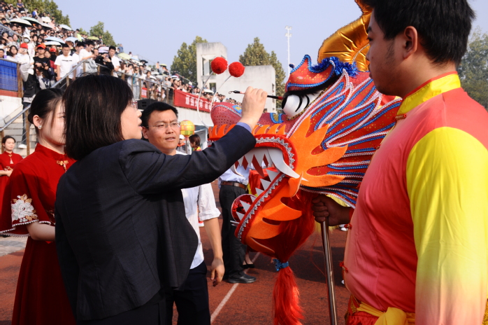 劉建中致開幕詞。他表示,體育承載著國家強盛、民族振興的夢想,體育強則中國強。學校始終秉承“以學生為本”的理念,堅持把“健康第一,終身體育”作為體育工作的目標,不斷推進體育課教學俱樂部制改革,讓每個學生都能找到適合自己的體育鍛煉項目,讓學生喜歡體育,樂于鍛煉,并在體育鍛煉中培養健康意識、學會鍛煉方法、弘揚體育精神。我校體育教育教學俱樂部改革穩步推進,成績顯著,我校學子在國際國內各類體育賽事中取得較多優異成績。今年8月份召開的成都第31屆世界大學生夏季運動會上,我校唐君瑤同學獲得女子重劍團體賽金牌、蘭明豪同學獲得男子重劍團體賽銀牌,充分展示了我校高水平運動員的培養成果,為母校贏得了榮譽。體育不僅強健了我們的身體素質,也豐富了我們的校園生活,也為學校各項事業發展和“高水平應用型大學建設”注入了生機活力。最后,他預祝本屆田徑運動會取得圓滿成功,號召同學們以民族復興為己任,以拼搏進取為常態,在酣暢的運動中,享受超越自我的人生樂趣;在你追我趕的競爭中,錘煉力爭上游的人生斗志;在齊心協力的合作中,詮釋互助共贏的人生意義。