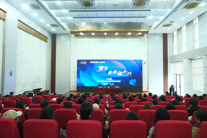 11月16日下午,由科研處、語(yǔ)言文化與傳媒學(xué)院主辦的南艷湖大講堂學(xué)術(shù)報(bào)告在圖書館B報(bào)告廳舉行,特邀安徽日?qǐng)?bào)報(bào)業(yè)集團(tuán)副總編輯計(jì)永超作題為“逐夢(mèng)新媒體時(shí)代”的學(xué)術(shù)講座。校長(zhǎng)吳春梅教授致歡迎辭,講座由語(yǔ)言文化與傳媒學(xué)院院長(zhǎng)丁增武教授主持。學(xué)院領(lǐng)導(dǎo)班子與150余位新聞傳播學(xué)專業(yè)師生共同參與此次講座。