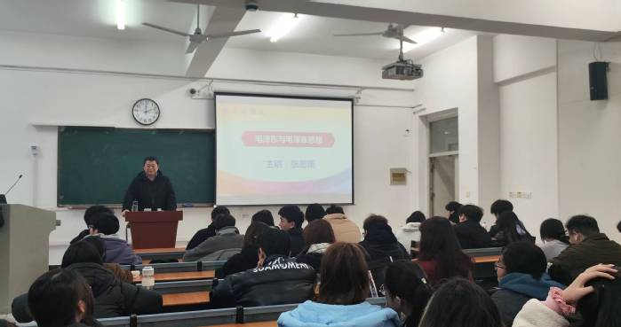 張思揚從“歷史的回顧,早期的人生,偉大的思想,不朽的功勛”四個方面,帶領同學們系統回顧毛澤東同志的一生,重溫中國共產黨人的初心和使命。課上,張思揚介紹了毛澤東同志的人生歷程和毛澤東思想誕生的歷史意義,使同學們真正解了毛澤東思想是馬克思列寧主義基本原理和中國革命和建設具體實際相結合的產物,是中國共產黨人集體智慧的結晶。同時他圍繞“第一代共產黨人如何堅守初心”與同學們進行了深入探討,勉勵同學們要牢記“為中國人民謀幸福,為中華民族謀復興”的初心,認真學習,掌握過硬的知識本領,在新時代努力為實現中華民族的偉大復興而奮斗。