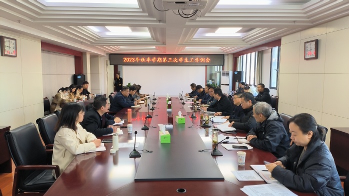 為統籌做好期末學生工作,有效保障秋冬季學生安全,12月1日上午,學校在行政樓九樓東會議室召開了2023年秋季學期第三次學生工作例會。黨委副書記劉建中出席,相關職能部門負責人、各二級學院黨委副書記、學工辦負責人參會,會議由學生處處長丁增云主持。