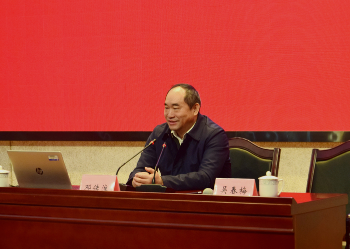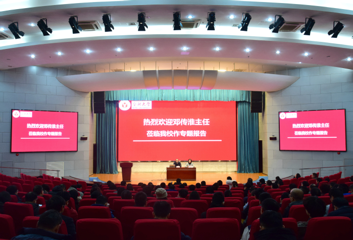 12月25日上午,由學(xué)校科研處和黨委宣傳部聯(lián)合主辦的“深入學(xué)習(xí)領(lǐng)會(huì)習(xí)近平總書(shū)記教育重要論述和黨的二十大對(duì)教育的新部署新要求”學(xué)術(shù)報(bào)告會(huì)在圖書(shū)館報(bào)告廳A廳舉行。中國(guó)教育學(xué)會(huì)學(xué)術(shù)委員會(huì)常務(wù)副主任委員、教育部政策法規(guī)司原司長(zhǎng)鄧傳淮應(yīng)邀作專題講座,學(xué)校領(lǐng)導(dǎo)干部、師生共200余人到場(chǎng)聆聽(tīng)。報(bào)告會(huì)由校長(zhǎng)吳春梅主持。