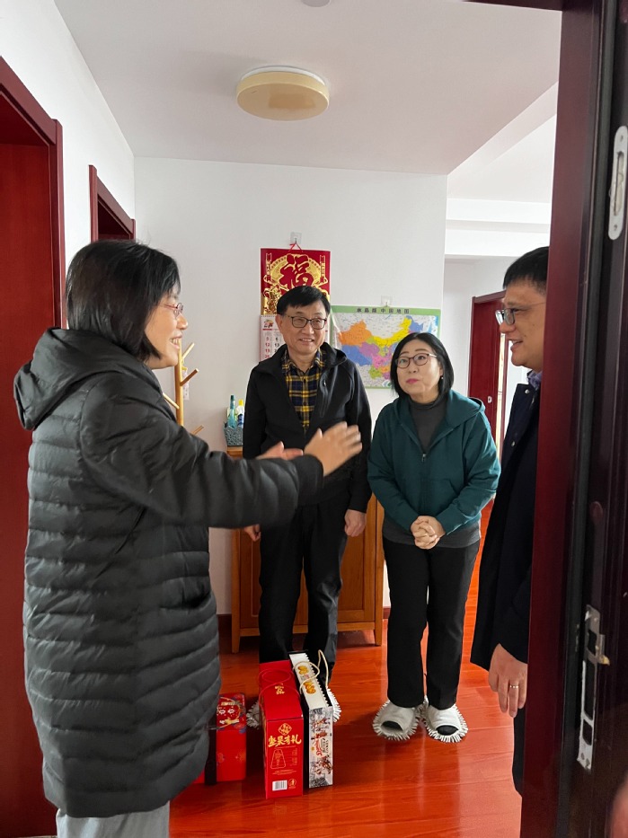 在湯衛思和金燦慶教授家中,吳春梅代表學校向兩位教授及家屬致以親切問候和新春祝福,并送上學校準備的春節慰問品。吳春梅詢問了專家們的工作與生活情況,希望專家為學校高水平對外開放與高質量人才培養作出更大的貢獻。