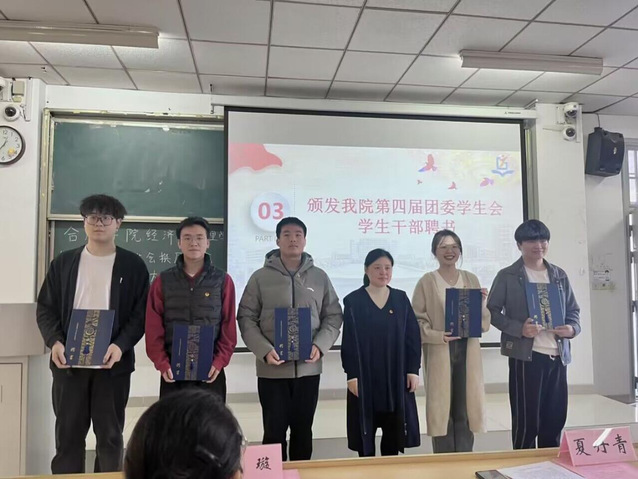 11月20日,合肥學院經濟管理學院第五屆團委學生會暨成立大會于一期五棟101教室順利舉行。經濟與管理學院黨委副書記夏丹青、經濟與管理學院團委書記姚璇、經濟與管理學院第四屆成員以及第五屆學生會全體成員參加此次大會。