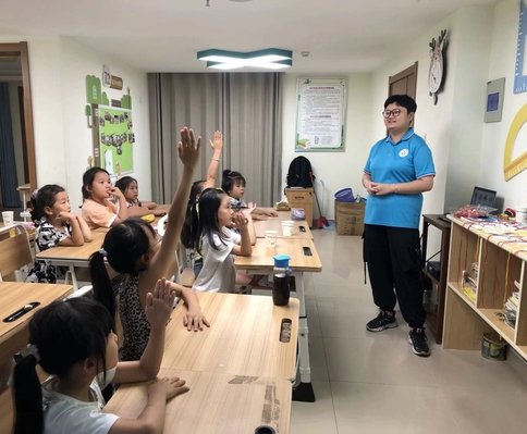 7月5日,合肥學院教育學院“七彩童年,‘育’你相伴”三下鄉團隊來到濱湖和園社區開展社會實踐活動,王欣悅和高凡兩位老師為孩子們帶來了“中國結,中國情”課程。課程的主要目的是讓孩子們在學會制作中國結的同時,感受民間技藝的獨特魅力,領悟中國結的豐富內涵,傳承優秀傳統文化。 中國結是一種中國特有的手工編織工藝品,它以其獨特的造型、豐富的內涵充分體現出中國人民的智慧和和深厚的文化底蘊。因此在課程開始之前,王老師首先提出了一個與之相關的問題:“春節這天,大家家中都會怎么布置”,孩子們積極舉手回答,也由此導入了本節課的內容——學習制作中國結。