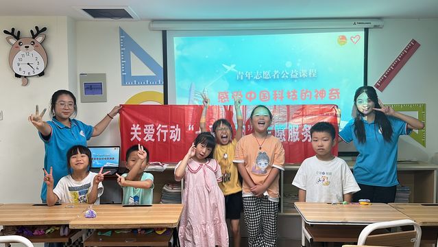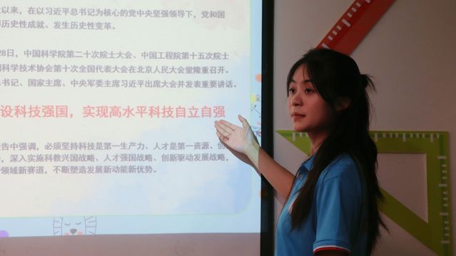 7月8日下午,合肥學(xué)院教育學(xué)院“七彩童年,‘育’你相伴”三下鄉(xiāng)社會實(shí)踐團(tuán)隊(duì)于合肥濱湖和園社區(qū)開展了一節(jié)課程。本次課程由志愿者彭啟月?lián)沃髦v教師,志愿者侯鑫宇擔(dān)任助教,主要內(nèi)容是讓孩子們感受中國科技的神奇。 少年強(qiáng)則國強(qiáng),少年擁有探索新知的欲望,有無法想象的潛能,更有青春洋溢的活力。國強(qiáng)來自創(chuàng)新,創(chuàng)新來自少年。彭啟月老師希望通過講解中國科技的日新月異,觸摸其背后的艱辛,樹立民族自信,志向高遠(yuǎn),助力時代新征程。 課程開始,“奮斗者號深潛萬米,達(dá)到世界之最,在深海留下中國印記;‘嫦娥五號’飛上太空,奔逸絕塵……”老師向孩子們娓娓道來著一個個激動時刻,一座座科技高峰,一個個創(chuàng)新前沿,為孩子們描繪了中國科技繼往開來、上天入海的畫面,孩子們無不驚嘆于中國科技的無窮魅力與神奇。緊接著,老師又帶領(lǐng)孩子們欣賞視頻《坐標(biāo)中國》,視頻中問鼎蒼穹、跨山越海的中國跨度,精益求精的中國精度,屢創(chuàng)奇跡的中國高度,九天攬月、五洋捉鱉的中國深度,逢山開路、遇水架橋的中國力度,挑戰(zhàn)極限的中國速度……一樁樁、一件件由中國人民創(chuàng)造的奇跡讓孩子們感受到祖國的強(qiáng)大,也提高了孩子的民族自豪感。在老師詢問對短片中的哪個片段印象最深刻時,令老師感到意外的是,有孩子站起來回答道:“C919!我坐過C919!”其他孩子也紛紛發(fā)表自己的感言,“我也想要學(xué)開大飛機(jī)!”“我長大后也想要當(dāng)一名科學(xué)家!”伴隨著孩子們的純稚的童言童語,在追逐夢想的新起點(diǎn)上,中國科技將飛得更深、更遠(yuǎn)。