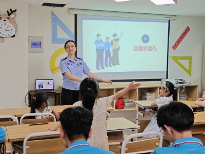 珍愛生命,遠離水域。防溺水安全教育一直是我們需要加強的重點領域。暑期已至,炎炎夏日,正是溺水事故的高發期,為了保障孩子們的暑假安全,提高他們的防溺水意識,倪警官和孩子們展開關于防溺水知識的討論,提問孩子們相關的安全問題。除此之外,她還借助簡單易懂的小視頻向孩子們講解了“離岸流”和“干性溺水”的知識,并建議孩子們通過學習游泳提高自救和互救的能力。讓孩子們在輕松的氛圍中學到更多安全知識。