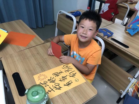 熱身結束后,課程正式進入主要環節--“價值觀拍賣會”。價值觀細微、瑣碎,但能深刻地影響著孩子們未來的生活。因此,志愿者想在最后一天為孩子們留下能夠“受益一生”的財富,即用“價值觀拍賣會”這種將價值觀“商品化”的方式讓孩子們感受對自己來說最重要的是什么。在這場“價值觀拍賣會”游戲中,有的孩子一開始就瞄準了“健康”與“快樂”,也有孩子對于某個“商品”猶豫不決。短短的一個多小時游戲,讓大家沉浸式地體驗了一次拍賣會的樂趣。當“父母對自己感到驕傲”的卡片一出現,氣氛瞬間熱烈起來,價格也在一次次的舉牌示意下逐漸上漲,最終一位孩子“傾盡所有”,用全場最高價得到了它。拍賣結束后,課堂的氛圍從熱烈中漸漸安靜下來。孩子們都仔細地思考“什么對你來說才是最重要的”這一問題。伴隨著舒緩的音樂,志愿者引導孩子們訴說自己心中所想,他們在互動中增進了彼此的了解,敞開心扉,踴躍交流。這場拍賣會也順利落下了帷幕。