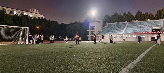 賽前,教育學(xué)院的隊(duì)伍早早來到比賽場地進(jìn)行賽前的熱身和準(zhǔn)備活動(dòng),她們有條不紊地進(jìn)行賽前的訓(xùn)練,明亮的燈光打在她們的身上,懷揣理想的她們在此刻似乎在熠熠生輝。比賽正式開始時(shí),雙方隊(duì)員迅速站位。隨著裁判員一聲哨響,比賽拉開帷幕,比賽過程中雙方展現(xiàn)了她們一往無前的精神意志以及熟練的技巧,伴隨著田徑場附屬樓內(nèi)傳來的陣陣鼓聲,教育學(xué)院女足的11號隊(duì)員梅怡賢以矯健的身姿帶球過人率先拿下1分。雙方隊(duì)員你來我往,在足球場上不停地穿梭,她們的身影就是一道亮麗的風(fēng)景。教院的后衛(wèi)以及守門員以嚴(yán)密的配合牢牢守住了球門。中場休息時(shí),雙方進(jìn)行了戰(zhàn)術(shù)調(diào)整及人員的更換。第二場開始后,雙方隊(duì)伍不停地進(jìn)攻,試探,比賽愈發(fā)激烈,逐漸進(jìn)入了白熱化的階段。場外的觀眾時(shí)不時(shí)爆發(fā)出一聲聲的贊嘆,教院的隊(duì)伍多次踢中對方的球門,而人大院的隊(duì)伍也一次次地逼近教院的球門,整場比賽極具觀賞性。最后以裁判的哨聲落幕,比賽以教育學(xué)院女足以1:0戰(zhàn)勝了人大院女足。