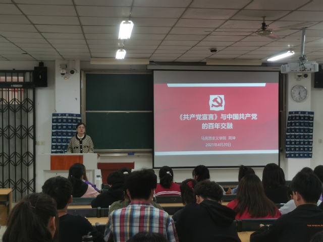 4月20日,旅游與會展學院第十九期入黨積極分子培訓班第四次黨課培訓在博學樓A座107教室順利開展,本次黨課以“《共產黨宣言》與中國共產黨的百年交融 ”為主題,由馬克思主義學院周坤老師主講。