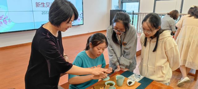在新生見面會和實驗室初體驗活動中,旅游展學院副院長鄭嬗婷、旅游管理系系主任高騰、副主任張業臣、實驗室主任胡遲、團委負責人李娜、專業教師茆長榮等與同學們進行了交流。見面會在張老師帶領同學做游戲的活躍氛圍中開始,首先由鄭院長代表學院對新生表達了歡迎,對學習專業知識和大學生活規劃提出了要求,希望學生肩負時代責任和使命擔當。接下來高老師介紹了專業的基本情況、專業特色、師資隊伍和新版人才培養方案等,茆老師介紹了行業實踐和職業發展等。最后,胡老師介紹了實驗教學、邀請同學們一起體驗茶藝。