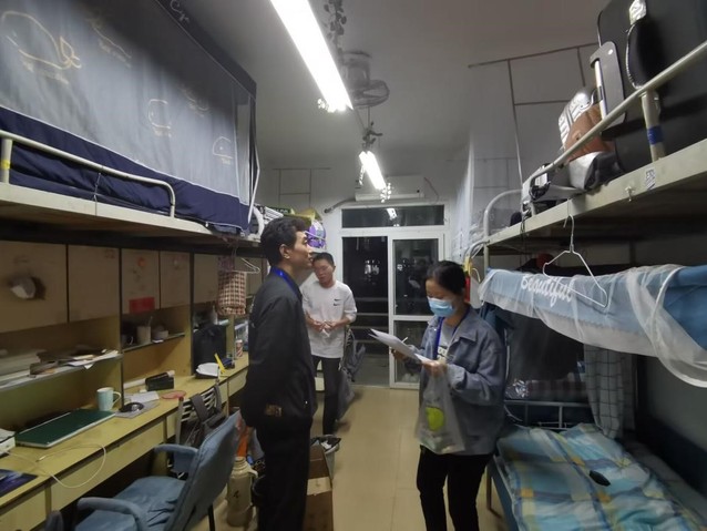 走訪期間,領導老師確認了學生在校情況,仔細詢問學生們近期的學習生活狀況,強調了疫情期間配合學校做好疫情防控的重要性。對宿舍里可能存在的安全隱患進行排查,叮囑同學們一定要做好自我防護,多通風,勤洗手,在公共場合佩戴口罩。學院領導和輔導員與同學們親切交流,深入了解并解答大家針對線上學習和生活中遇到的問題和疑惑。黃雄英書記強調,當前特殊時期,希望同學們理解配合,一是要遵守學校的相關防疫工作要求;二是提高自我防護能力,學習防控知識;三是學會自律,專業學習不停歇;四是保持樂觀心態,合理安排學習生活。