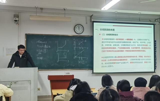 為培養(yǎng)旅游專業(yè)學(xué)生學(xué)科素養(yǎng),加深對(duì)于旅游業(yè)未來發(fā)展趨勢(shì)的認(rèn)識(shí)。12月3日,旅游與會(huì)展學(xué)院旅游管理系副主任張業(yè)臣博士在我校一區(qū)博學(xué)樓A座302教室為旅游與會(huì)展學(xué)院2020級(jí)旅游管理專業(yè)的同學(xué)們帶來以“全域旅游發(fā)展路徑——理論與實(shí)踐”為主題的專題講座。