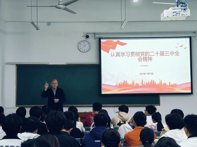 1114下午,校黨委書記王其東以“認真學習貫徹黨的二十屆三中全會精神”為題,分別為新能源、能源化學工程、工業設計、機械自動化(雙元制)等專業2024級新生講授《形勢與政策》課,受到同學們的熱烈歡迎。