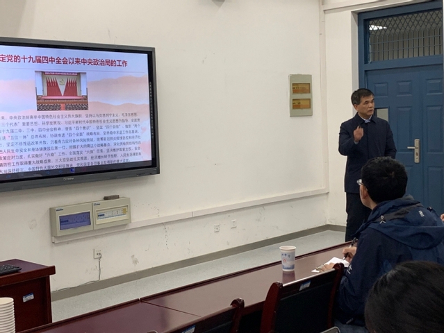 15日下午,副校長盧平在41505教室為城市建設與交通學院所有學生黨員上了一堂生動的黨課,受到同學們的熱烈歡迎。報告由城市建設與交通學院黨委書記胡曉軍主持。