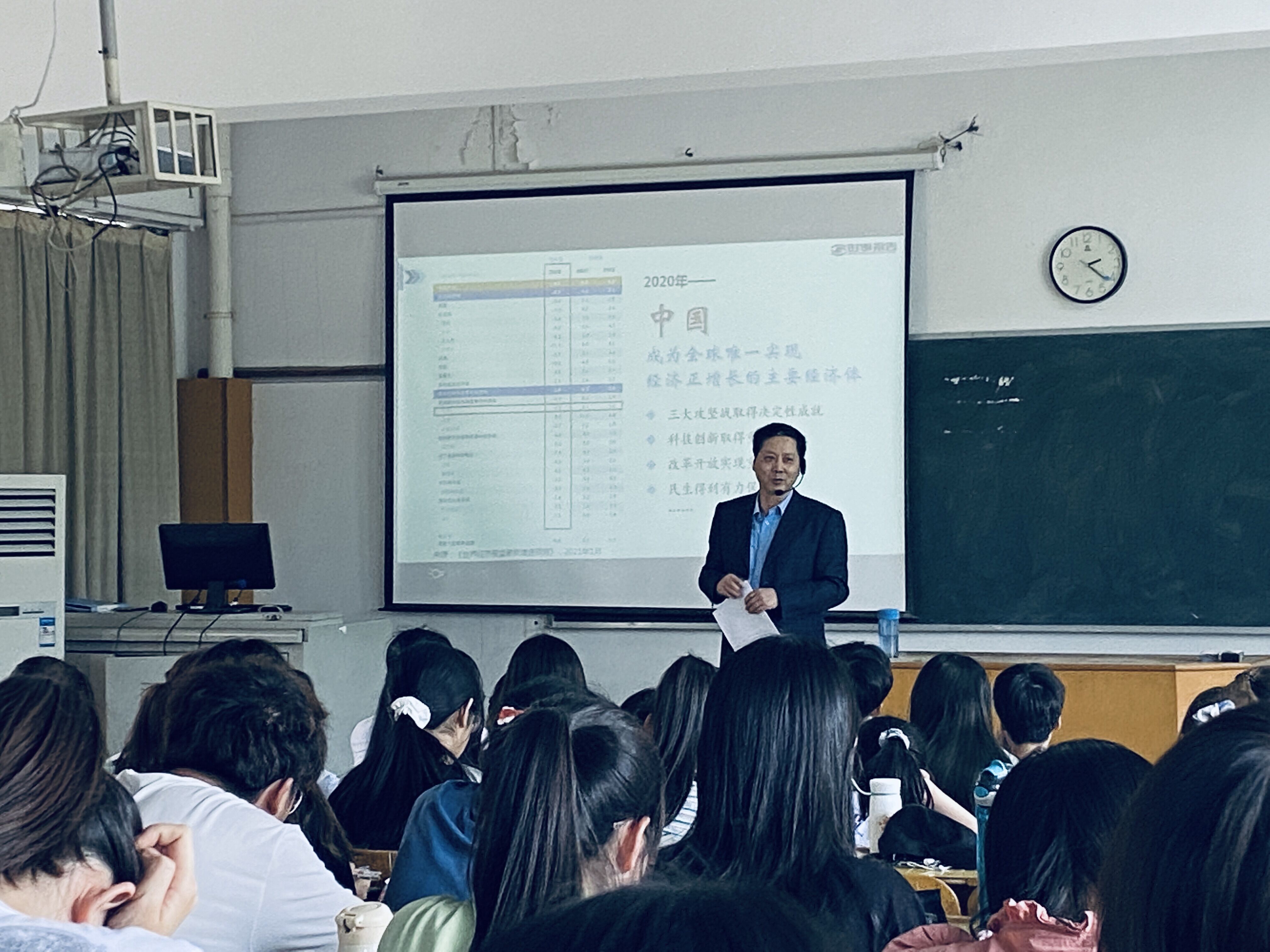 2021525日下午,校黨委副書記劉建中教授在11103教室以“看懂新發(fā)展格局這盤大棋”為題,為20級(jí)日語(yǔ)、20級(jí)德語(yǔ)和20級(jí)新聞專業(yè)的本科生講授了一次精彩的“形勢(shì)與政策”課。