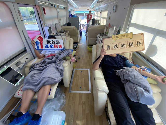 獻血車上,在血站醫務人員和學校志愿者的指揮引導下,早早就開始等候的同學們自覺地在獻血車前排起了長隊,大家嚴格遵守獻血秩序,積極配合進行各項檢查和采血,現場氣氛高漲。獻血隊伍中,有第一次參加獻血的“新面孔”,也有每年堅持參加獻血的“老熟人”,與他們而言,獻血是義務,也是收獲。獻血過程中,他們的臉上始終洋溢著滿足的笑容,正是同學們踴躍參與的熱情和奉獻自我的精神讓獻血車里充滿著暖心的溫情。