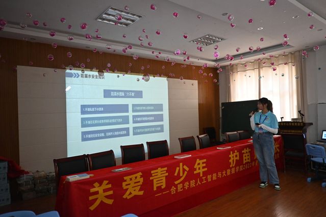 青少年學生的生命安全和健康成長,涉及億萬家庭的幸福和正常教育教學活動的開展和實施。保障他們的安全,是家庭和教育工作的首要職責,也是全社會的共同責任。為有效提升中小學生安全防范意識,引導他們更好的投入自身學習,實踐團隊全體隊員來到朱巷鎮中心學校,為小朋友們開展了一場“關愛青少年,護苗助成長”為主題的安全教育暨學業引航講座。講座上,實踐隊員通過精心制作的PPT、生動有趣的校園情景劇重點從防溺水、預防校園欺凌、遠離網癮、防電信網絡詐騙以及注重人身財產飲食交通安全等方面依次開講,并結合大量的數據、實例、圖片等,把安全意識種在了在場的每位小朋友心中。同時還結合合肥學院的基本情況、校園景色等向小朋友們作了大學的宣傳推薦,鼓勵大家努力學習,爭取考上理想的高等院校。