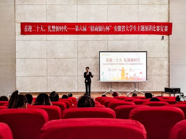 9月17日,第六屆“招商銀行杯”安徽省大學(xué)生主題演講比賽復(fù)賽在我校舉辦。本次比賽旨在學(xué)習(xí)貫徹落實(shí)習(xí)近平總書記在慶祝中國(guó)共產(chǎn)主義青年團(tuán)成立100周年大會(huì)上的重要講話精神,團(tuán)結(jié)引領(lǐng)廣大團(tuán)員青年堅(jiān)定跟黨走,以實(shí)際行動(dòng)迎接黨的二十大勝利召開(kāi)。