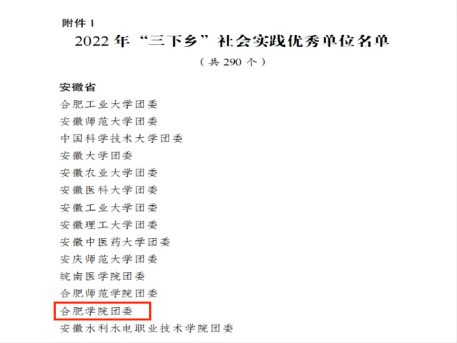 近日,共青團中央下發《關于2022年全國大中專學生志愿者暑期文化科技衛生“三下鄉”社會實踐活動的通報》,對在2022年全國大中專學生志愿者暑期“三下鄉”社會實踐活動表現突出的優秀集體、項目和個人進行表彰,我校團委榮獲全國大學生暑期“三下鄉”社會實踐優秀單位,全省共14所高校團委獲得此項榮譽。