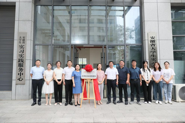 吳孔寶與沈曉琴在實踐中心為“合肥學院大學生社會實踐基地”揭牌。(團委)