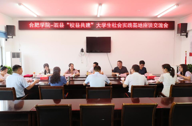 7月6日下午,合肥學院—泗縣“校縣共建”大學生社會實踐基地簽約儀式在泗縣縣委組織部會議室舉行。泗縣縣委常委、組織部部長、統戰部部長劉朋、縣委組織部副部長沈曉琴、團泗縣縣委書記姚金波等領導及我校黨委組織部正處級組織員周全、外國語學院黨委書記吳孔寶、團委副書記李妍妍、副處級組織員張海卿等領導及代表出席會議,會議由劉朋主持。