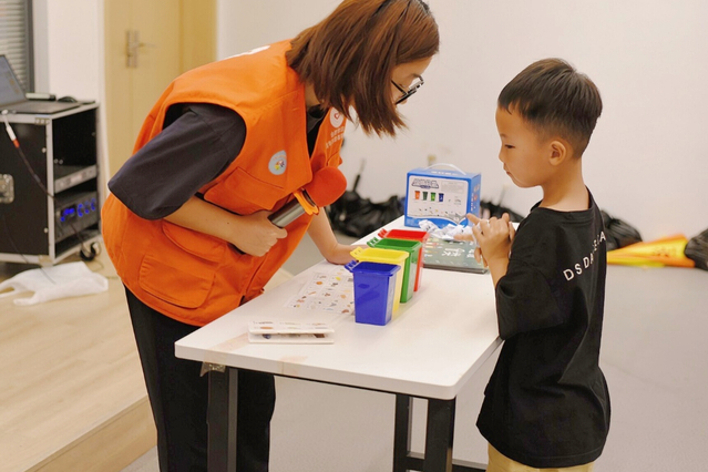 為增強小朋友們保護環境、綠色生活的意識,志愿者為小朋友們開展了綠色宣講課。通過播放動畫視頻,志愿者老師用通俗易懂的語言,幫助小朋友們理解垃圾分類的相關知識。現場還舉辦了垃圾分類游戲環節,小朋友們積極報名,踴躍參與,按照老師的指示,寫有各種垃圾名稱的紙條扔到其對應的教具里,氣氛十分活躍。同時,志愿者們還通過走訪調研的方式與學生家長進行溝通,就垃圾分類知識向他們進行講解和宣傳,共建綠色家園