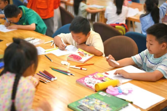 七彩假期,不僅僅只局限于課堂知識,也要加強和改進美育建設,堅持以美育人、以文化人,提高學生審美和人文素養。依托于“悅書房”的教學地點,小朋友們天馬行空的想象力得到了充分的展示,五彩斑斕的顏色被一筆筆涂繪在畫作上,一顆顆美育的種子也埋進了小朋友們的心里。志愿者充分尊重學生的個性差異,以多樣化的教學方式引起學生的鑒賞興趣,帶領小朋友們欣賞經典曲目《梁祝》《致愛麗絲》等。從美術到音樂,從課堂到生活,或淺或深的感悟在每個人的心中交換、消化,又創造出新知。