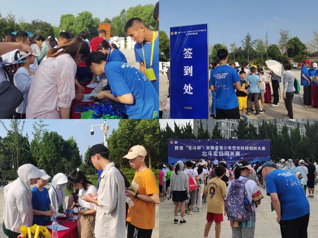 2023年8月19日上午,首屆“北斗杯”安徽省青少年空天科技創新大賽——北斗定位闖關賽在合肥市經開區南艷湖公園順利舉行。來自合肥學院的30名青年志愿者們穿戴整齊,協助工作人員組織人員進行簽到,同時引導家長和孩子們有序入場。