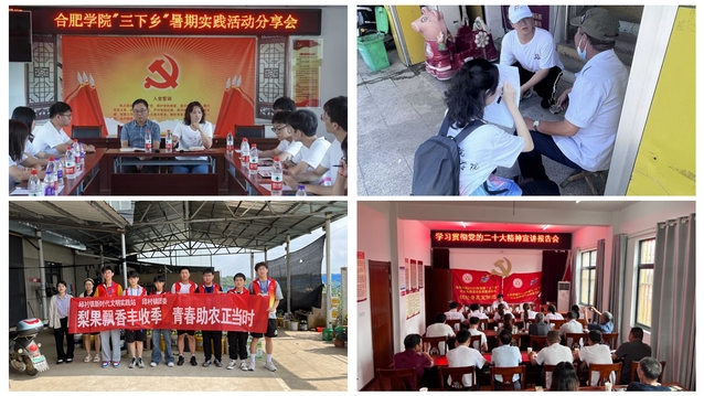 校學(xué)生會紅色“中”流砥柱,振興“分”秒必爭實踐隊以蕪湖市繁昌區(qū)中分村為調(diào)研目標(biāo),采用線上+線下結(jié)合的方式進(jìn)行實地調(diào)研,為推動當(dāng)?shù)氐慕?jīng)濟(jì)發(fā)展建言獻(xiàn)策;經(jīng)濟(jì)與管理學(xué)院團(tuán)隊對滁州市瑯琊區(qū)半塔鎮(zhèn)龍池社區(qū)居民進(jìn)行財商課程培訓(xùn),普及貨幣的概念和發(fā)展歷史;人工智能與大數(shù)據(jù)學(xué)院積極參與宣城廣德市邱村鎮(zhèn)的蜜梨摘采、包裝等工作,一定程度上緩解當(dāng)?shù)厝肆Y源緊張的問題;馬克思主義學(xué)院赴安慶市太湖縣天華鎮(zhèn)西沖村開展黨的二十大精神宣講,結(jié)合群眾最關(guān)心的問題,用形象生動的語言、實例解析家鄉(xiāng)的變化及未來展望