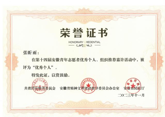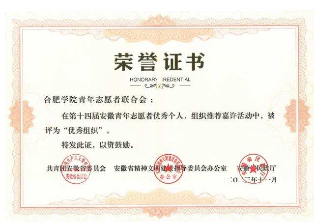 我校1學(xué)生1組織榮獲“安徽青年志愿者優(yōu)秀個(gè)人、優(yōu)秀組織”稱號(hào)